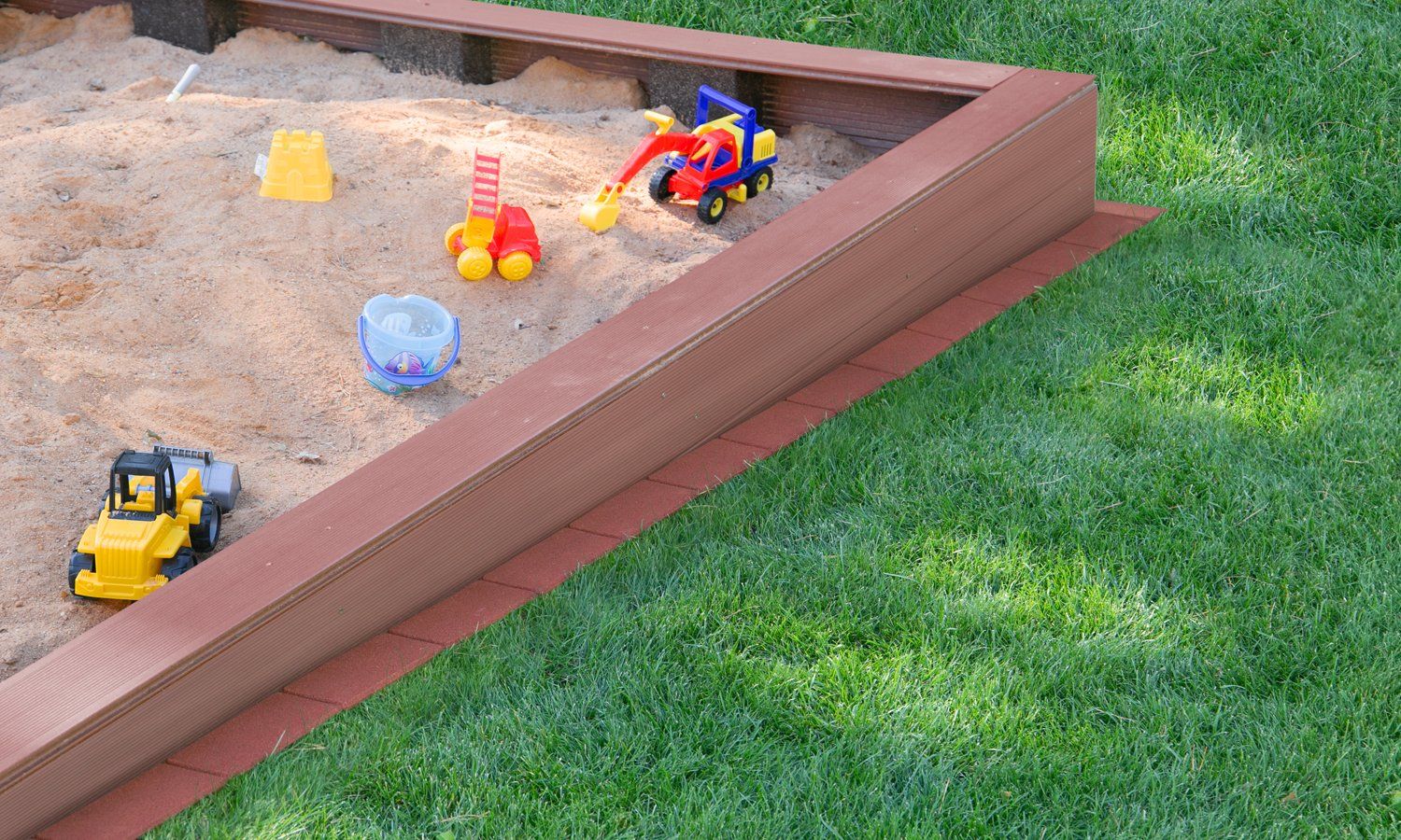 Die formschöne SECUPLAY Gummi-Mähkante ist die ideale Lösung für eine Vielzahl von Anwendungen im Garten und für Spielflächen.