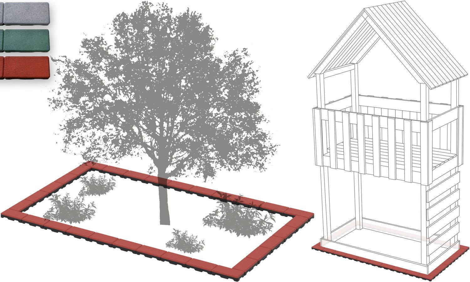 Bei Verwendung der SECUPLAY Gummi-Mähkante um Spieltürme/-bereiche ist zudem der sicherheitsrelevante Aspekt ein klarer Vorteil, denn kaum jemand möchte harte Betonsteine um eine Spielanlage platzieren, um den Bereich im Garten wo Kinder spielen, sich austoben können, aber eben auch stürzen.